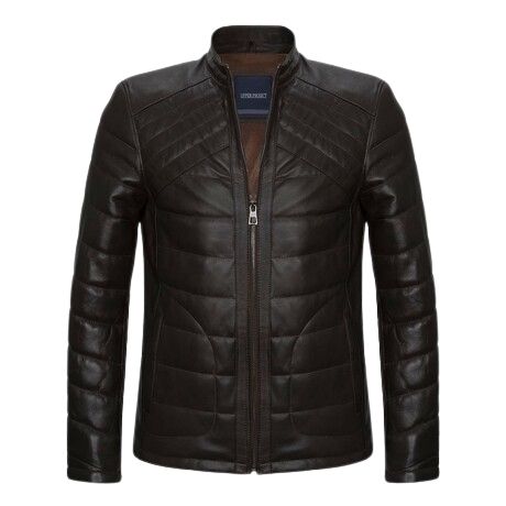 Black puffer-style jacket with a modern, quilted design for elegance and comfort, perfect for any occasion.